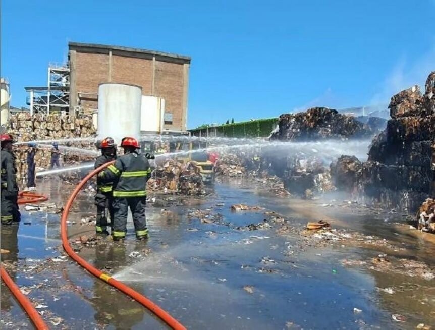 Un depósito de la papelera Smurfit Kappa de Bernal se incendió durante el mediodía de este lunes, poniendo a gran parte del personal bomberil a la acción. Los agentes se encuentran realizando tareas de enfriamiento.