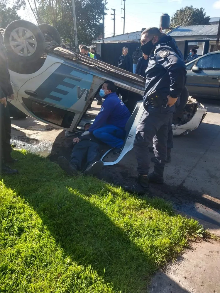 Según testimonios de testigos, el agente que conducía el móvil policial, habría sufrido una descompensacion, lo que hizo que perdiera el control del vehículo y terminó chocando con un auto en el cruce de La Querencia y Goyena, partido de Almirante Bown