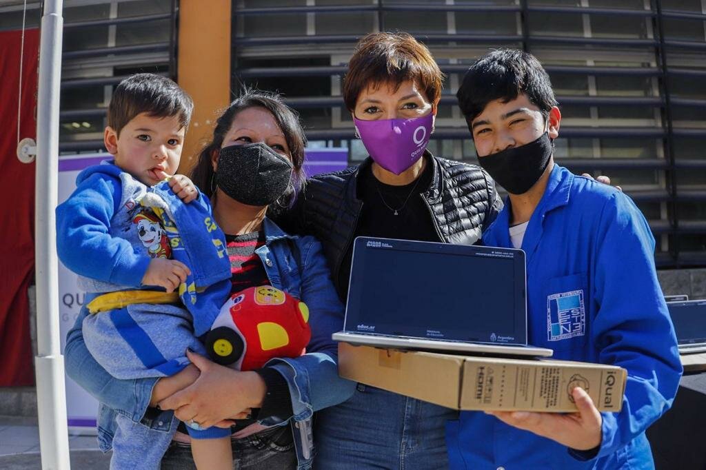 “Nuestros gobiernos se basan en trabajar para construir igualdad. Para conectar igualdad, como lo dicen estas computadoras, que tiene que ver con una política pública que se desarrolló en la Argentina cuando Cristina (Fernández de Kirchner) era presidenta. Y ahora estamos recuperando esas políticas para garantizar derechos, esta es una herramienta que nos da la posibilidad de eliminar la brecha de desigualdad digital en este caso, y también nos hace más libres. Nosotros queremos construir igualdad para ser libres. Y en ese camino de transformación social, queremos fortalecer la educación pública para que sea educación de calidad“, expresó Mayra, quien estuvo acompañada por la secretaria de Desarrollo Urbano y Obra Pública local, Ceci Soler, y su par de Educación, Joaquín Desmery, entre otras autoridades.