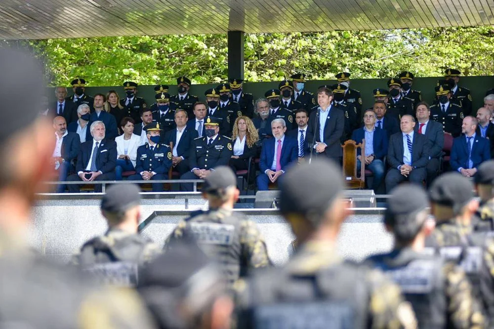 En ese marco, Kicillof destacó: “Cuando asumimos en 2019, nos encontramos con una fuerza policial degradada en lo salarial y carente de las inversiones para brindar el equipamiento necesario a los hombres y mujeres que arriesgan sus vidas todos los días”. “Iniciamos una política de recuperación salarial, que equipara los ingresos con los efectivos de las fuerzas federales, y lanzamos el plan de Fortalecimiento de la Seguridad, con la mayor inversión de la historia reciente”, agregó.