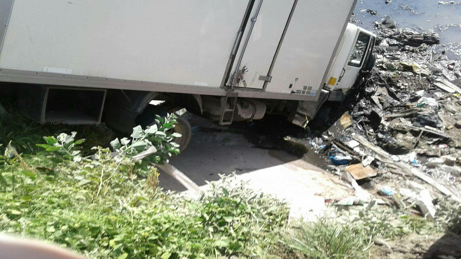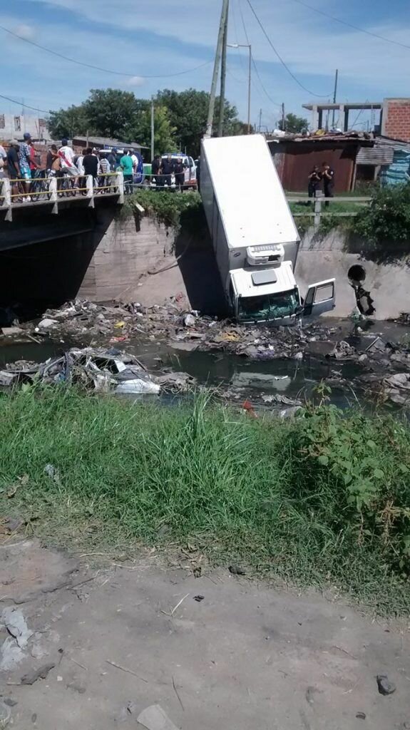 Un camión que se encontraba realizando un reparto en la zona oeste de Quilmes, cayó al arroyo Las Piedras luego de quedarse sin dirección, debido al fuerte impacto que sufrió una de las ruedas en una alcantarilla que no tenía tapa.