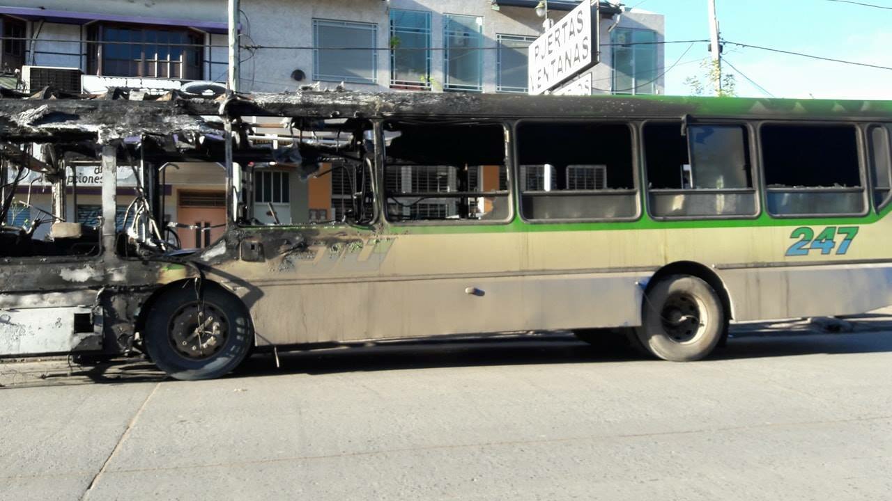 Debido al cortocircuito que se originó en la parte delantera del transporte, se inició un fuego que se propagó rápidamente, destruyendo por completo al mismo.