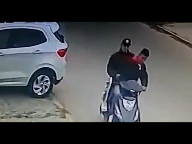 Un delincuente y su cómplice robaron la rueda de una camioneta en medio minuto. La secuencia quedó registrada en una cámara de seguridad.