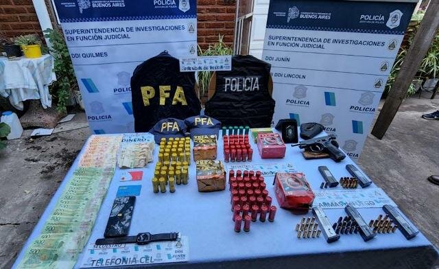 Los efectivos incautaron una pistola, una chapa pecho policial, dos gorras con la inscripción Policía Federal, dos chalecos tácticos de fuerzas de seguridad, cinco cargadores, un teléfono celular, dinero y numerosas municiones.