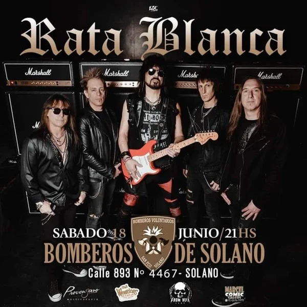Rata Blanca, banda icónica del heavy metal, hard rock y metal neoclásico, brindará un show en la ciudad de San Francisco Solano el próximo sábado 18 de junio a las 21:00 horas, más precisamente en el cuartel de Bomberos de calle 893 n°4467, entre 844 y 845.